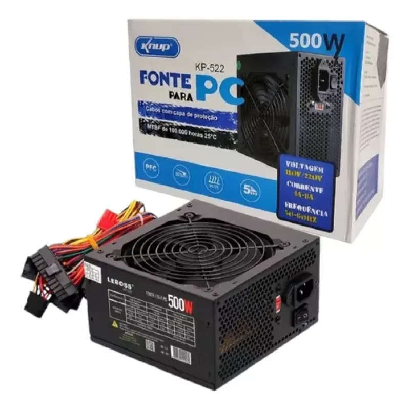 A Fonte Para Computador Atx 500w Real Knup Kp-522 é a escolha perfeita para quem busca qualidade e desempenho em sua máqui. Com marca Kanup renomada no mercado, essa fonte possui altura de 85 mm, comprimento de 140 mm e largura de 150 mm, garantindo um encaixe perfeito em seu PC. Seu diâmetro do ventilador de 120 mm proporcio uma refrigeração eficiente, mantendo seu computador sempre temperatura ideal. Com potência de saída de 500 W, essa fonte é capaz de suprir as necessidades de energia do seu sistema, seja para jogos, edição de vídeos ou qualquer outra atividade que exija alto desempenho. Com proteção contra sobrecarga, sobretensão e curto-circuito, você pode ficar tranquilo sabendo que seu equipamento está protegido. Além disso, essa fonte possui operação silenciosa, garantindo um ambiente de trabalho mais tranquilo e sem ruídos incômodos. Com conectores MOLEX, PCI-E e SATA, você terá todas as opções necessárias para conectar seus dispositivos. Invista Fonte Para Computador Atx 500w Real Knup Kp-522 e tenha um equipamento confiável e de alta performance.