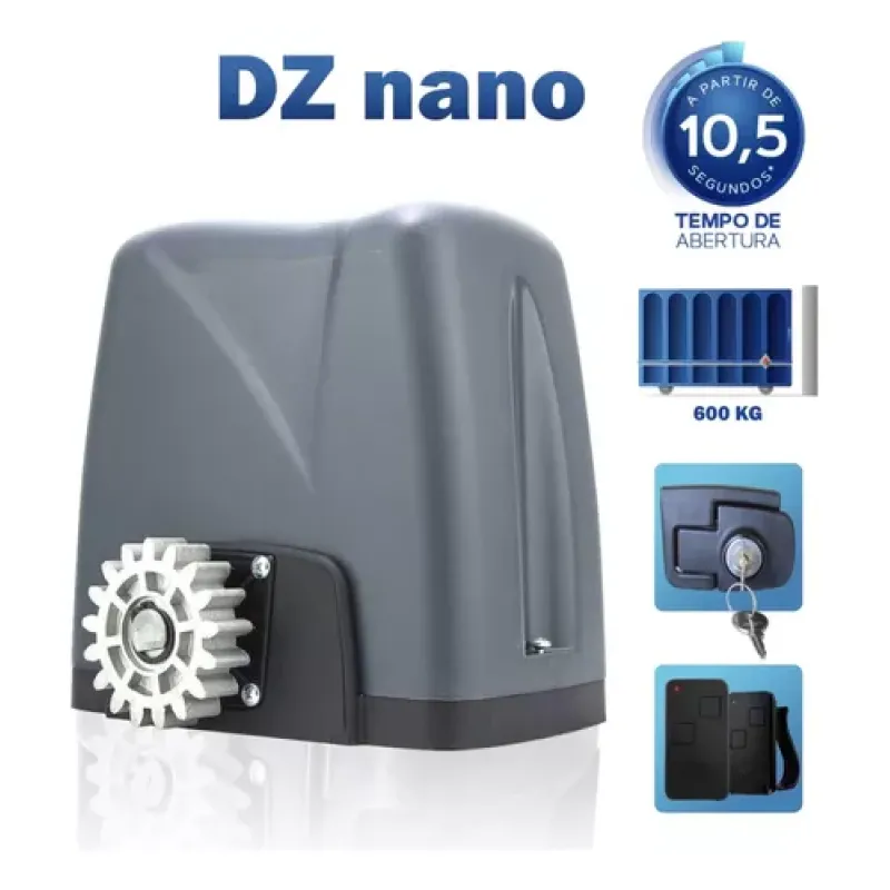 - Potência de 0,25 ou 1/4CV (portões até 600kg balanceado)