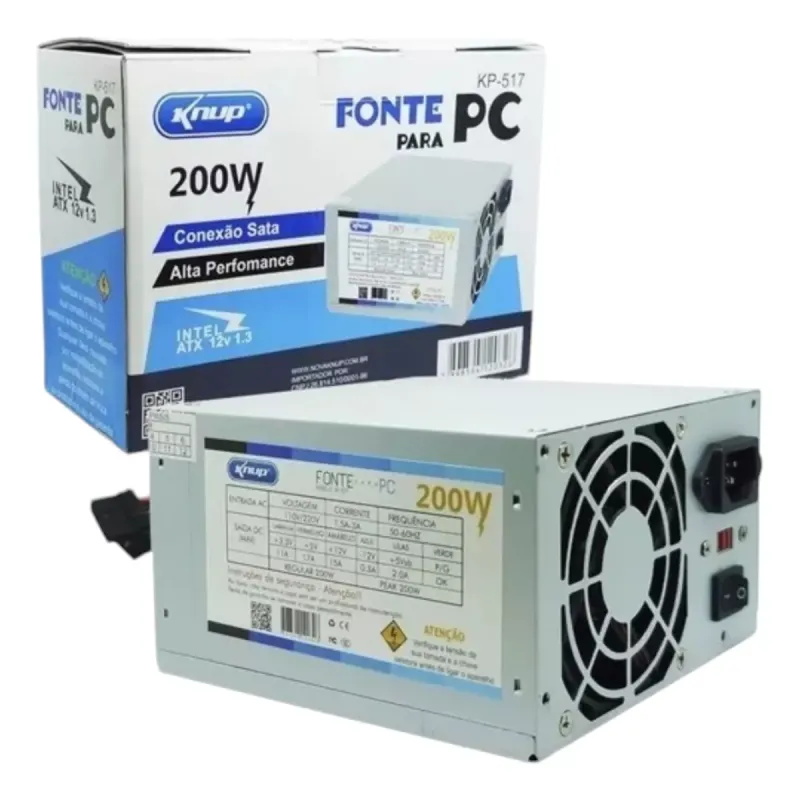 A Fonte de Alimentação para PC Knup KP-517 é a escolha ideal para quem busca eficiência e confiabilidade em seu sistema. Com uma potência de 200W, esta fonte ATX bivolt garante um desempenho estável tanto em 127V quanto em 220V, atendendo às necessidades de diversos componentes.